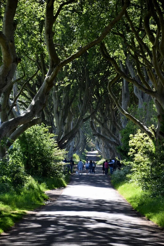Die Dark Hedges befinden sich an einer schmalen Straße direkt an der Causeway Coast-Fahrtroute. Uralte Buchen-Bäume die im 18. Jahrhundert gepflanzt wurden säumen diese enge Straße und bilden mit ihren verflochten, knorrigen Ästen einen beeindruckenden Anblick. Es ist auch ein Drehort für Game of Thrones und offiziell einer der am meisten fotografierten Orte in ganz Irland. Deshalb solltest du entweder früh morgens oder spät abends hierher zu kommen, um die Tourbusse zu vermeiden!