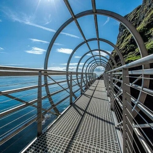 Der Gobbins Cliff Trail ist eine der einzigartigsten Aktivitäten in Nordirland und wahrscheinlich einer der einzigartigsten Küstenwanderwege der Welt. Dieser herausfordernde Pfad bei Islandmagee in der Grafschaft Antrim verläuft über Brücken, an Höhlen vorbei und durch einen Tunnel entlang der Klippen von The Gobbins und ist nichts für schwache Nerven! Die Brücken bringen dich über wilde Wellen, vorbei an steilen Klippen die für unglaubliche Fotos sorgen.