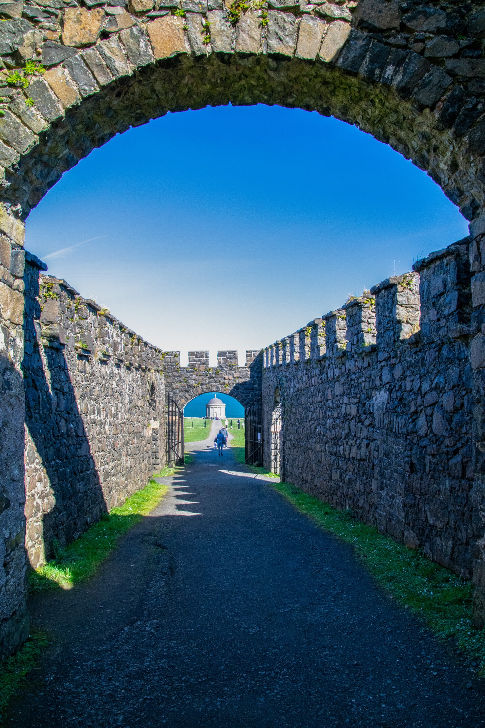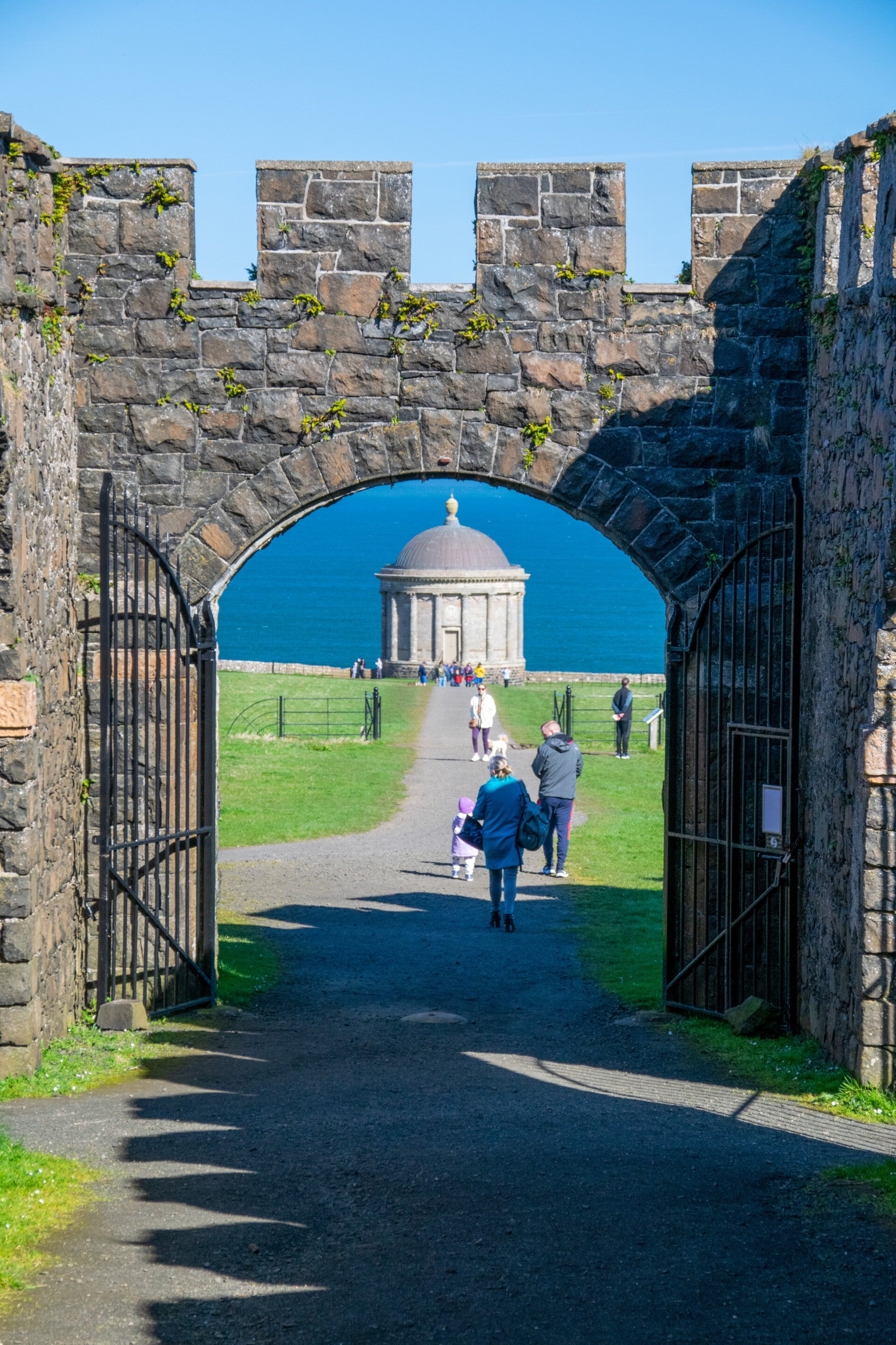 Als wir uns den Klippen nähern, können wir sehen dass der kreisrunde Mussenden Temple dramatisch nah an den Klippen thront. Bei seinem Anblick mag man glauben, der Tempel würde jeden Moment hinunterstürzen und mit einem lauten Knall in den Wellen des tobenden Atlantiks versinken.