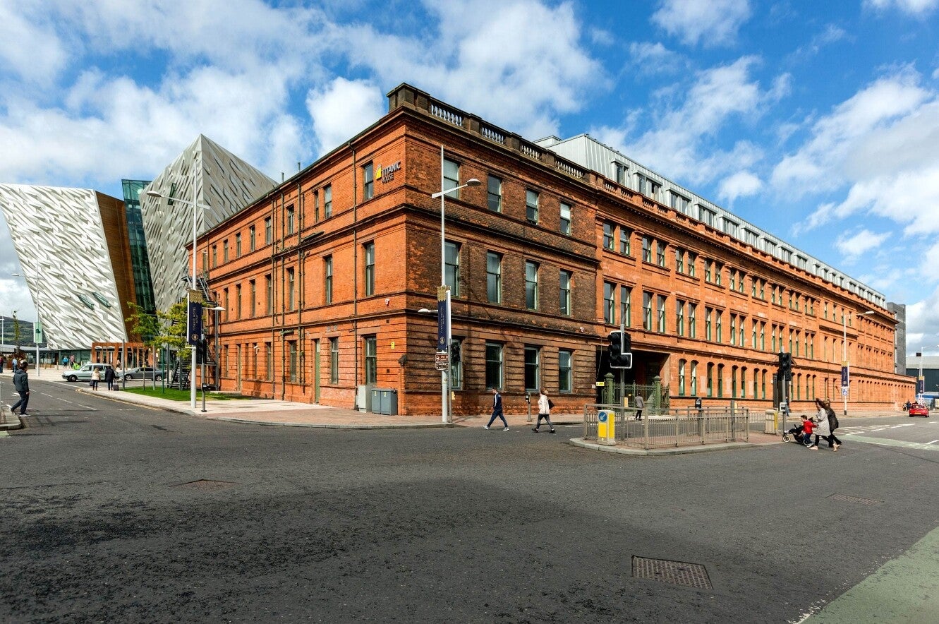 Gleich neben dem Museum im Titanic Quarter steht das erst 2017 eröffnete Vier-Sterne-Hotel „Titanic Belfast“ mit echten Erinnerungsstücken wie Schiffsbüchern oder auch der Mahagoni-Drehtür aus der Schiffslobby. Seine „Titanic Bar“ ist mit 720 Fliesen verkleidet, wie sie auch einst die Poolbar des Luxusliners schmückten.