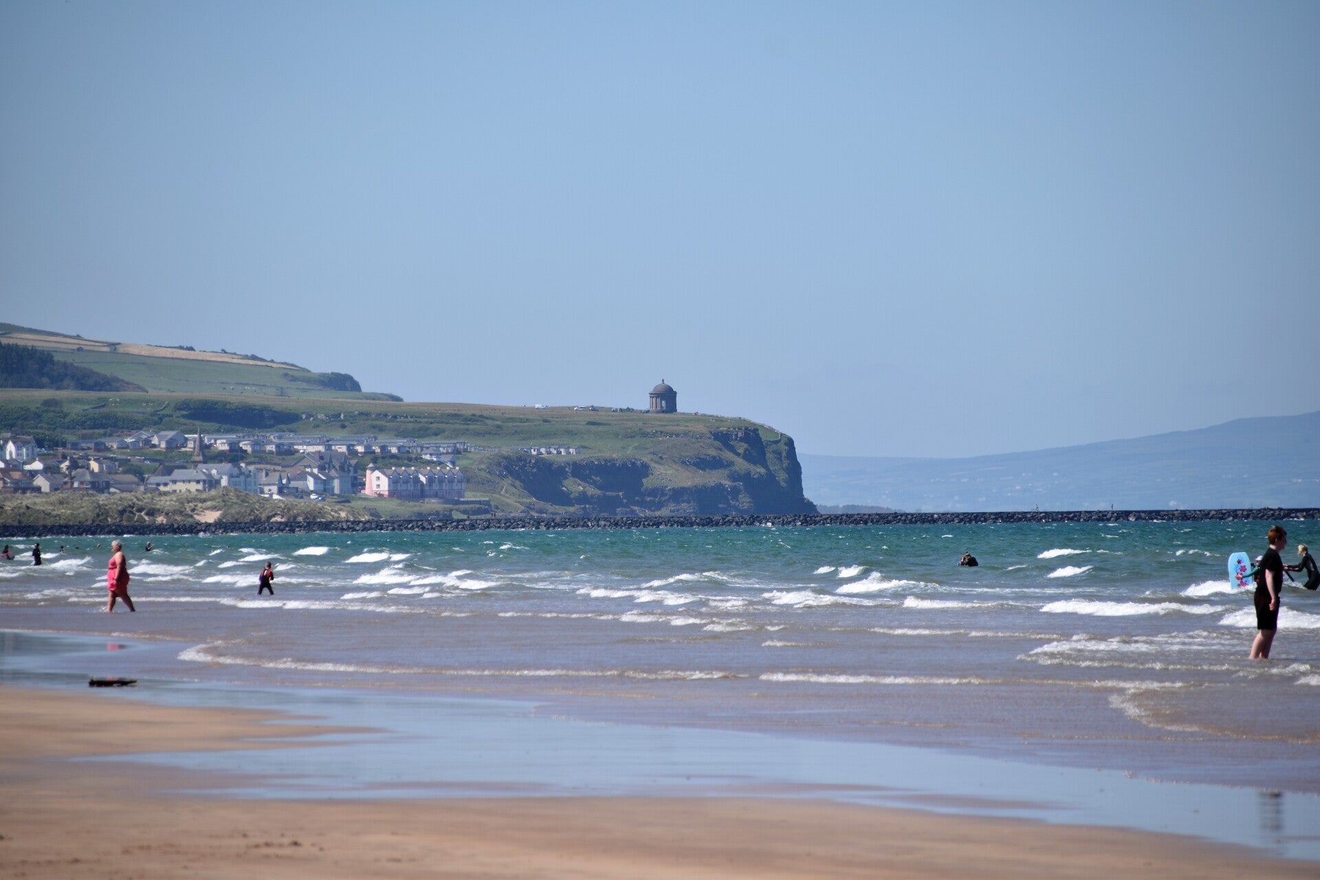 Im Hintergrund von Portstewart Beach sieht du den Mussenden Tempel - Ich bin mir fast sicher du hast ihn schon einmal irgendwo gesehen. Der kleine kreisrunde Tempel liegt direkt an der Klippe und wurde im Jahre 1785 gebaut diente als Bibliothek.